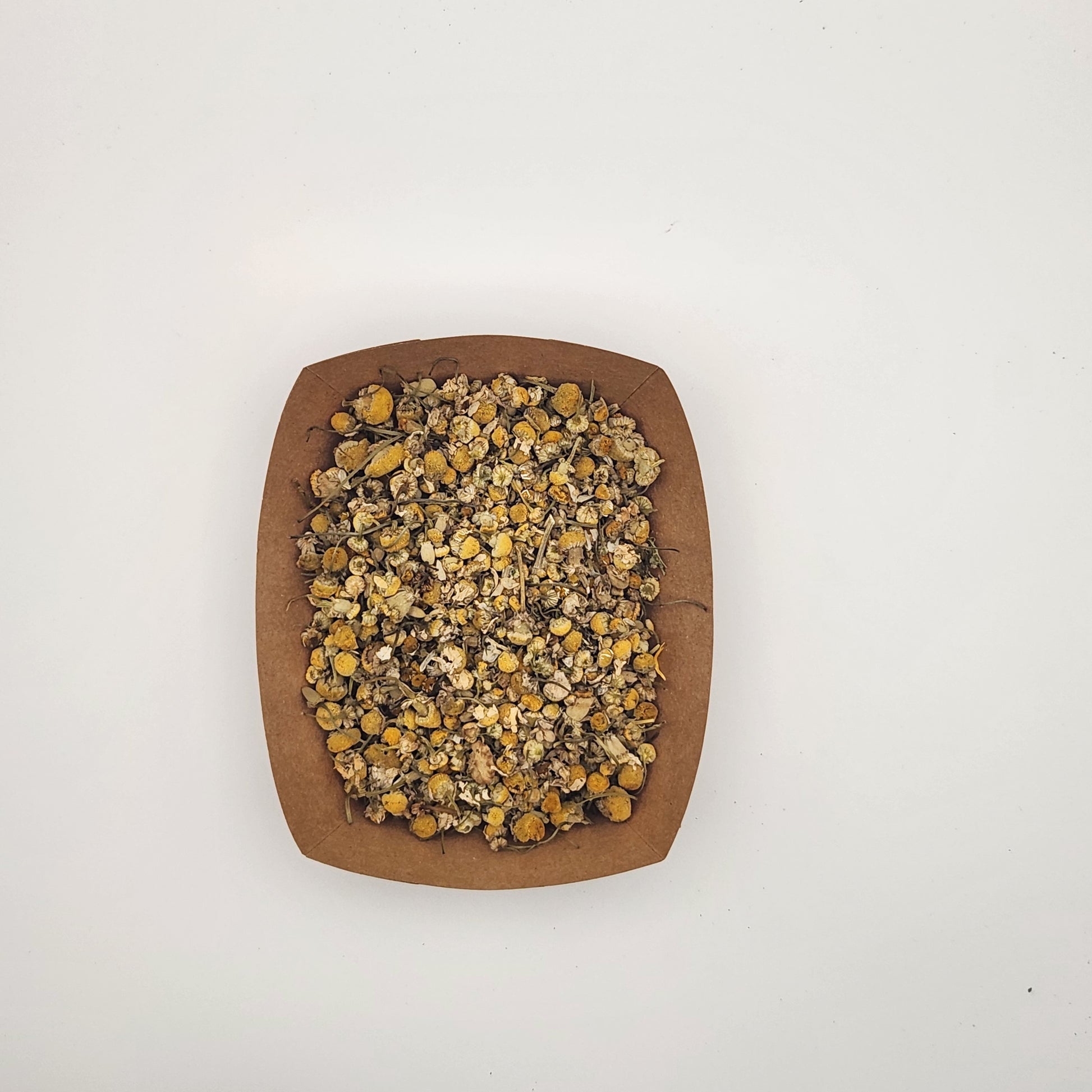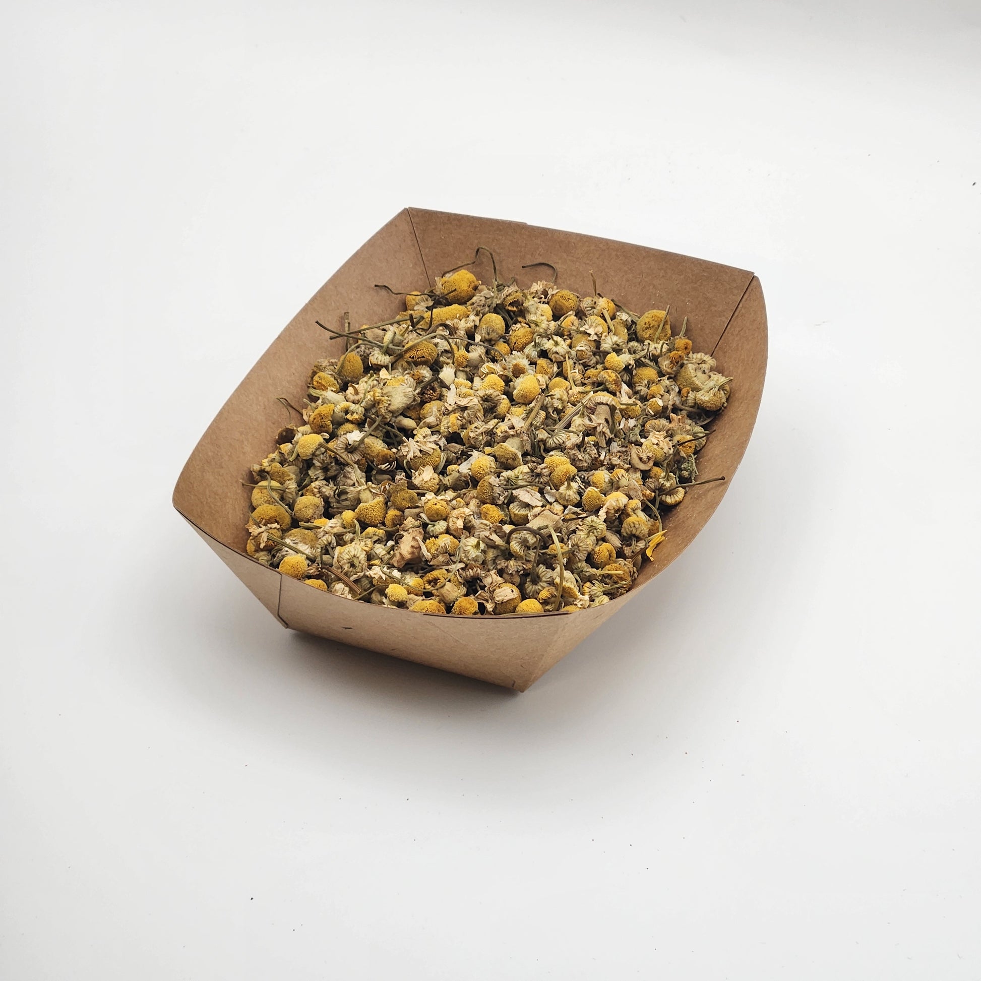 Chamomile flowers are whole, dried heads with a soft floral aroma and a light, papery texture. They invite calm engagement through nibbling and break-apart play as pets pull at petals and explore the shape. The delicate pieces make an easy option for light enrichment and texture variety. Serve as a light snack, mix into meals, or scatter for foraging enrichment. Offer as an occasional treat and rotate for variety.